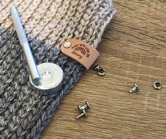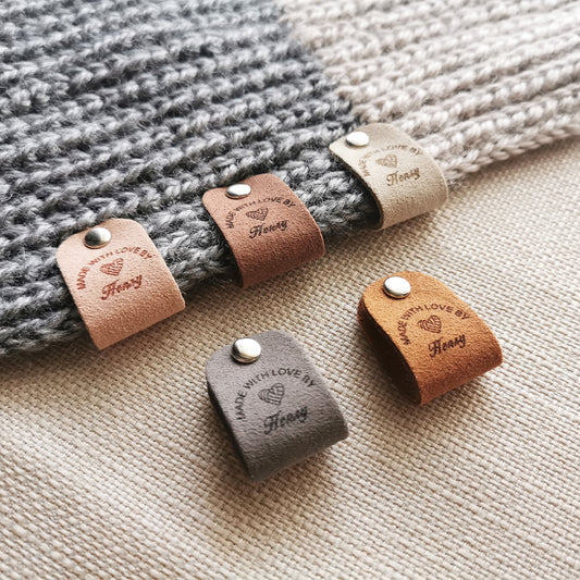 Labels for Handmade Items, Personalised Leather Tags, Custom Leather Labels, Handmade Knitting Tags (Rivets Included), 64x20mm