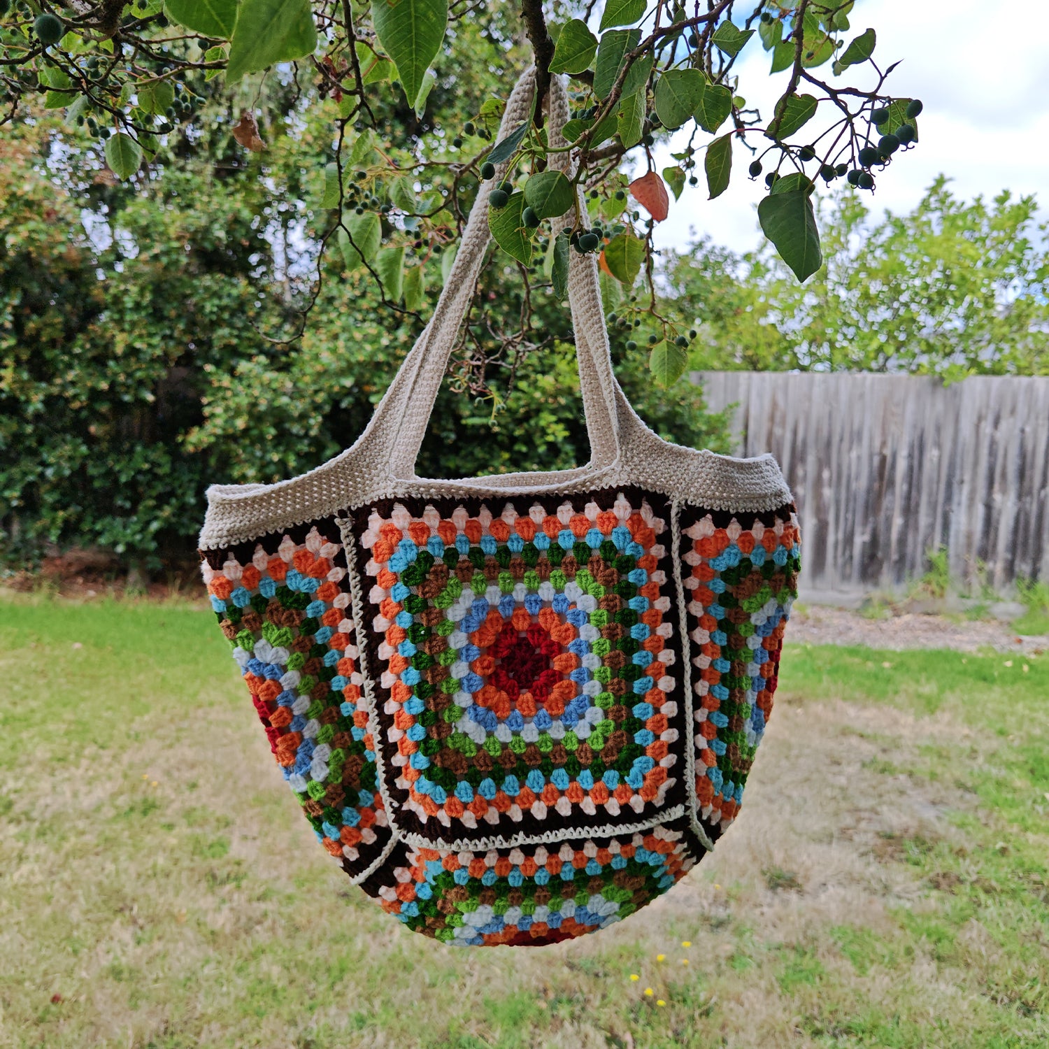 Handmade Retro Granny Square Crochet Bag, Soft Shoulder Bag & Tote, Gift for Her