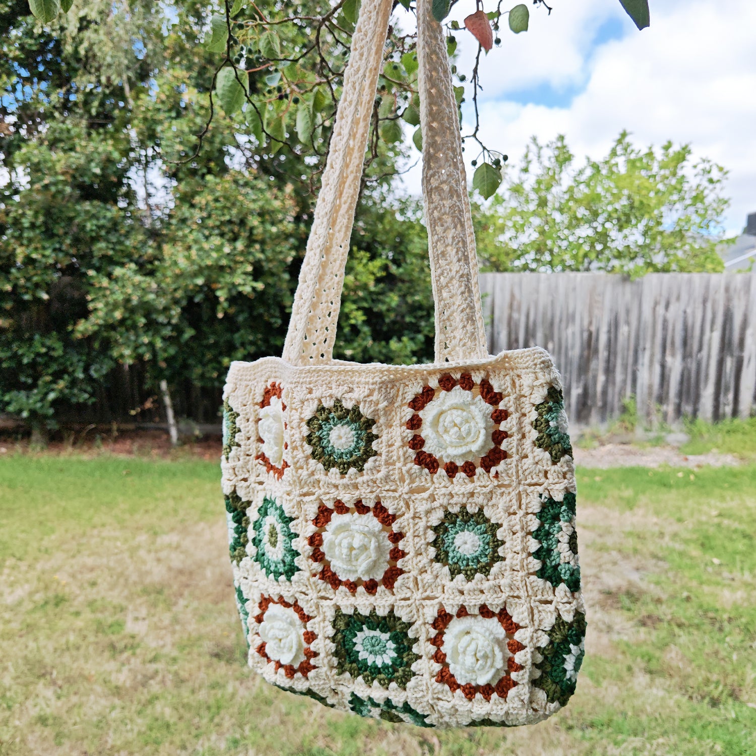 Handmade Vintage Granny Square Tote, Soft Shoulder Crochet Bag, Gift for Her